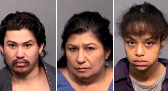 Anthony Jose Archibeque-Martinez, 23, Elizabeth Archibeque-Martinez, 26, e Ann Marie Martinez, 50, estão detidos e vão responder um processo por assassinato e dois de maus tratos.