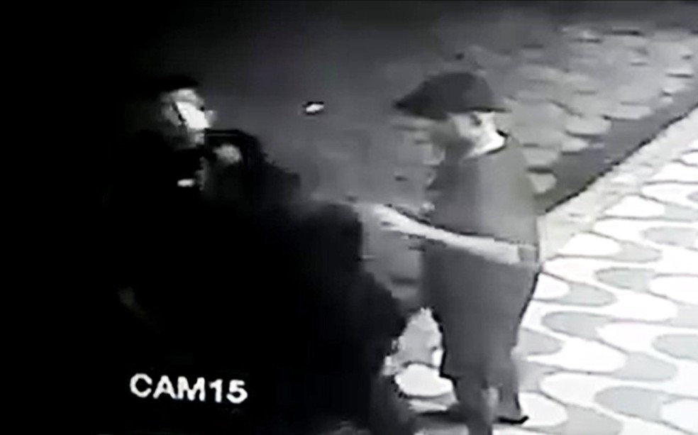 As imagens mostram o rapaz no canto esquerdo do vídeo, e em frente a ele está uma mulher. No vídeo, é possível ver que eles estão gesticulando. Ao lado dos dois, está um rapaz. Em determinado momento, surge o suspeito, que atira uma vez na cabeça da vítima. Assim que o jovem cai na via, o homem atira mais algumas vezes e foge em seguida.