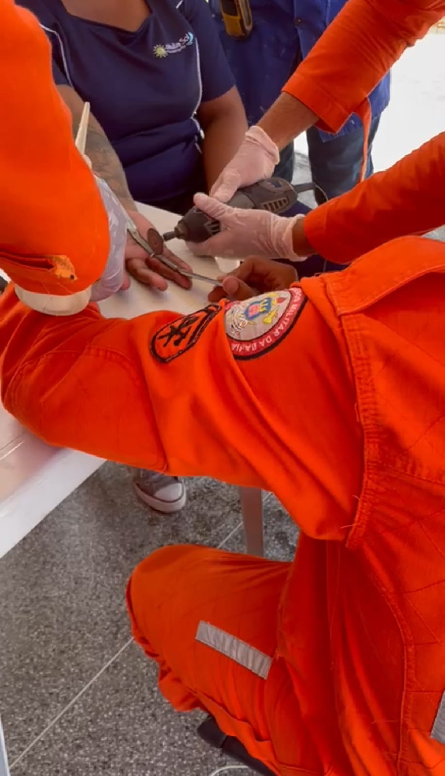 Para a remoção do acessório, os bombeiros tiveram que utilizar uma microrretífica