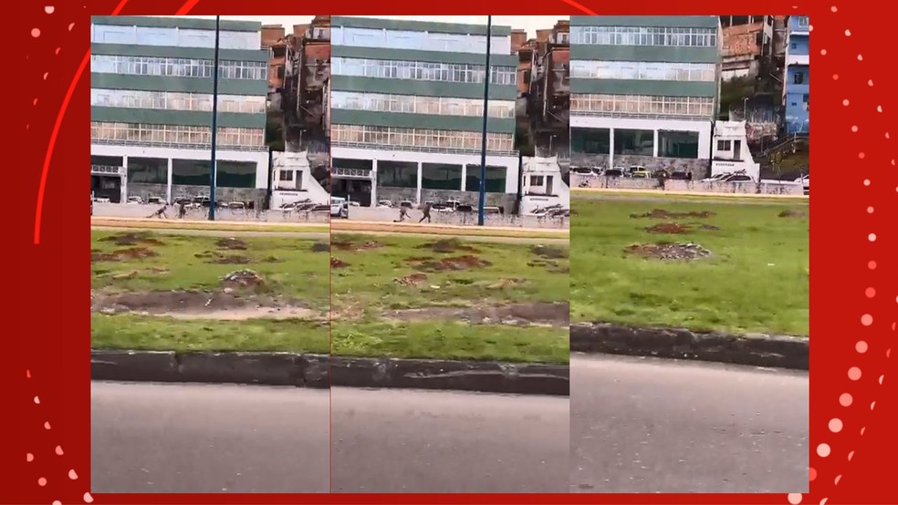 PM cai ao perseguir homem na Avenida Bonocô, em Salvador — Foto: Reprodução/Redes Sociais