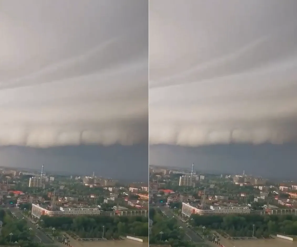 O fenômeno raro conhecido como 'supercélula', que consiste na formação de uma nuvem gigante e bastante carregada, foi registrado no sábado, 12, no noroeste da China. O momento foi gravado por moradores na cidade de Tacheng, próxima da fronteira com o Cazaquistão, que enfrenta tempestades nos últimos dias.