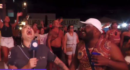 Ao entrevistar um rapaz, a repórter questionou se ele era solteiro. Após receber a confirmação sobre o estado civil, Vanessa disse que estava à procura de um amor, mas acabou sendo pega de surpresa com a resposta. "Eu sou tão viado", disparou o folião.
